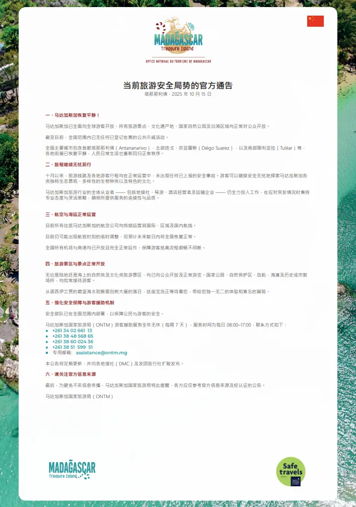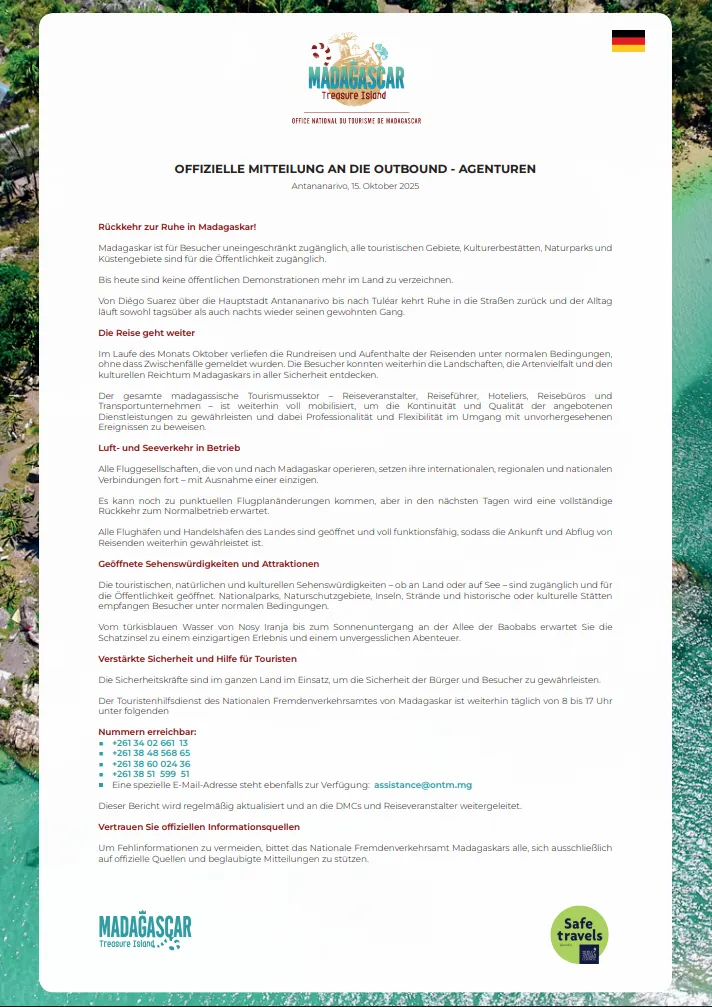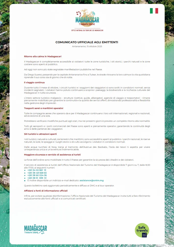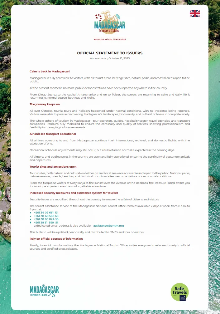 ShareOfficial communication on the tourist security situation in MadagascarGoGo commentsContinueNo comments yet